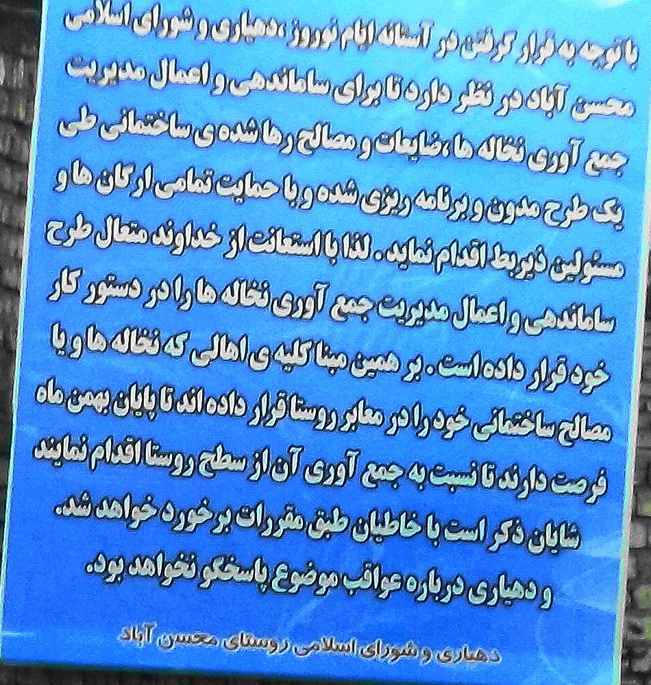 در شهرستان ما به دلیل اینکه زمین های بایر زیاد است بعضی به خود اجازه میدهند که زباله ها ونخاله های صنعتی ،خانگی ویا ساختمانی خود را در این محل ها بریزند . درسته که زمین بایر فاقد پوشش گیاهی یا آبادی است ولی به خودیه خود زیباست وما حق نداریم اطراف شهرهای خودمون را بد قیافه کنیم . مردم ومسئولین هم باید به شدت از این کار جلوگیری کنند و علاوه براین نسبت به جمع آوری نخاله های اطراف شهر ها وروستا ها اقدام نمایند . به هر حال دیگران با دیدن این صحنه ها به فرهنگ اصیل ما شک میکنند . در این راستا از دهیاری محسن آباد که برای این کار آستین بالا زده تشکر مینماییم